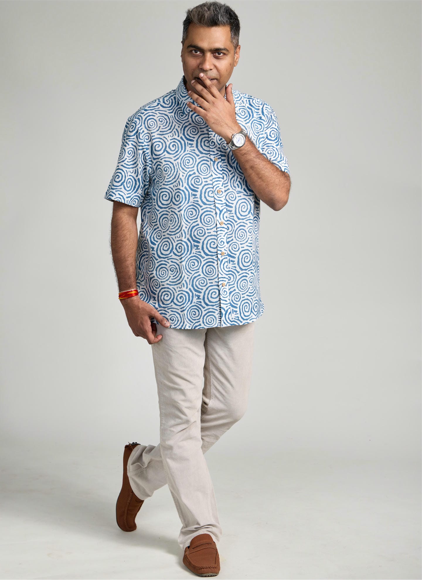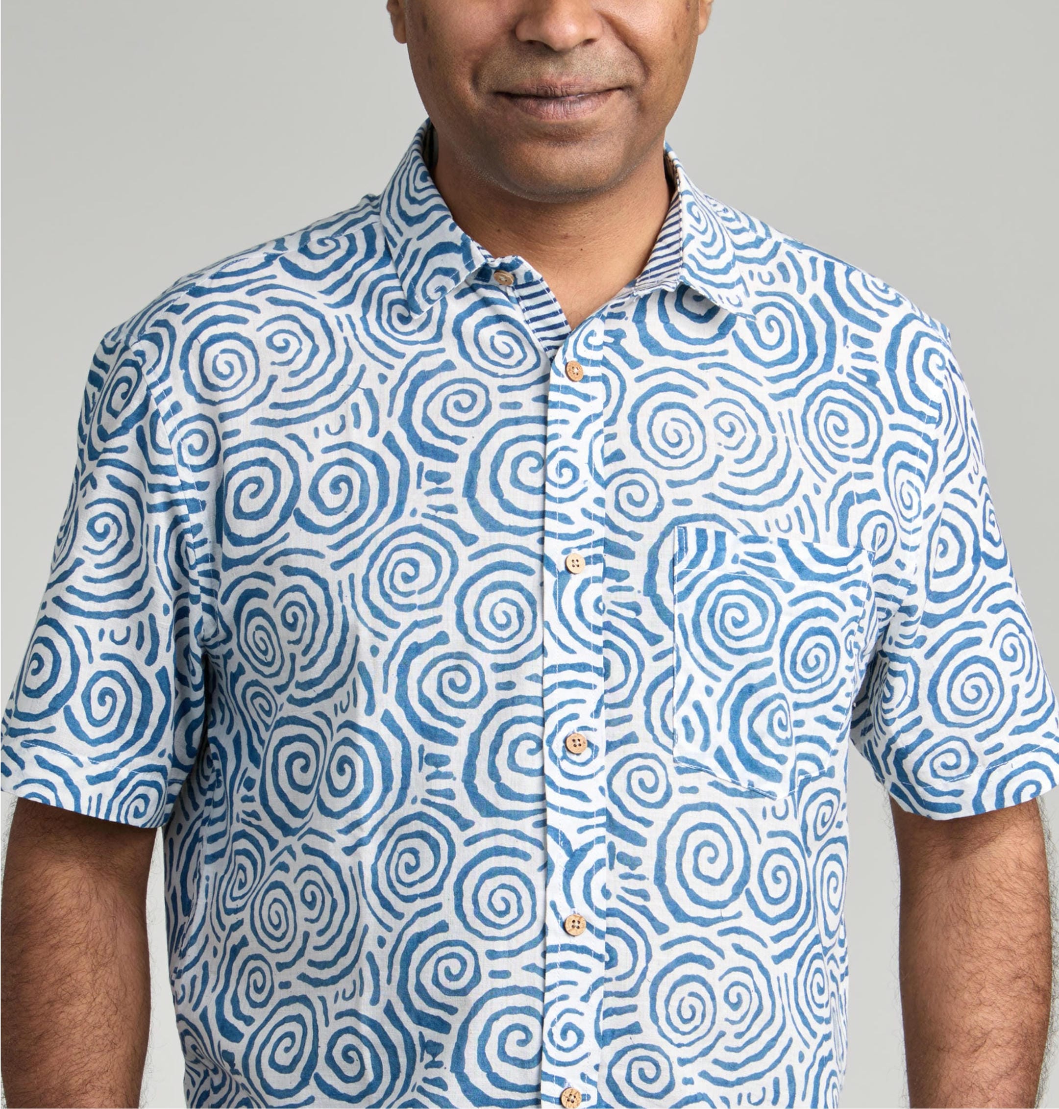 - Collar Style: Regular shirt collar Sleeve Length: Half sleeves Fit: Comfortable Technique: Block print Occasion: Versatile all-day wear, perfect for both work and leisure. Place of Origin: Hyderabad