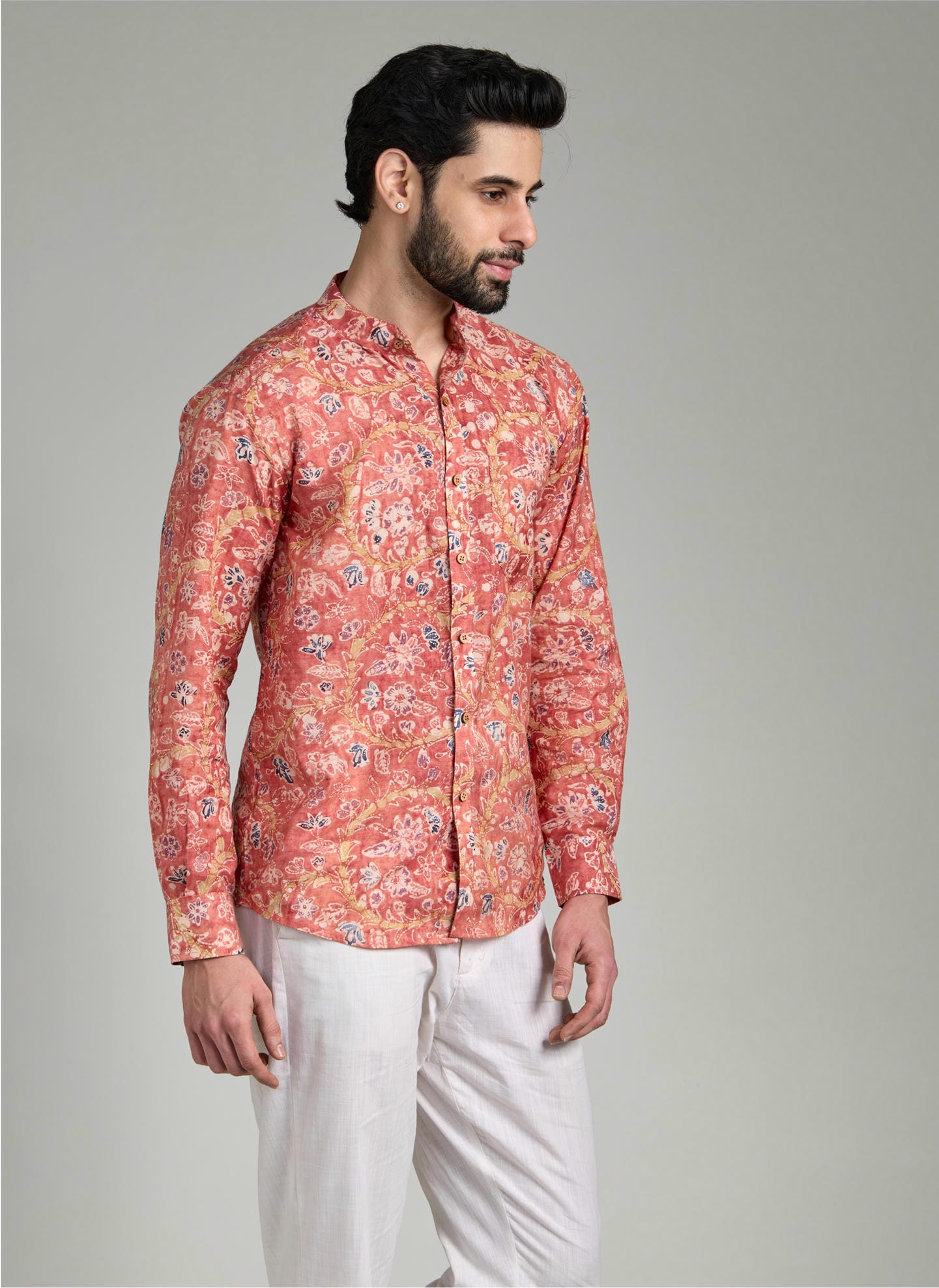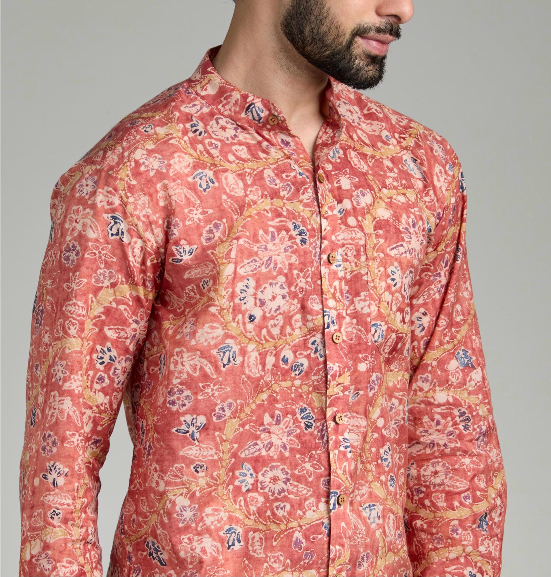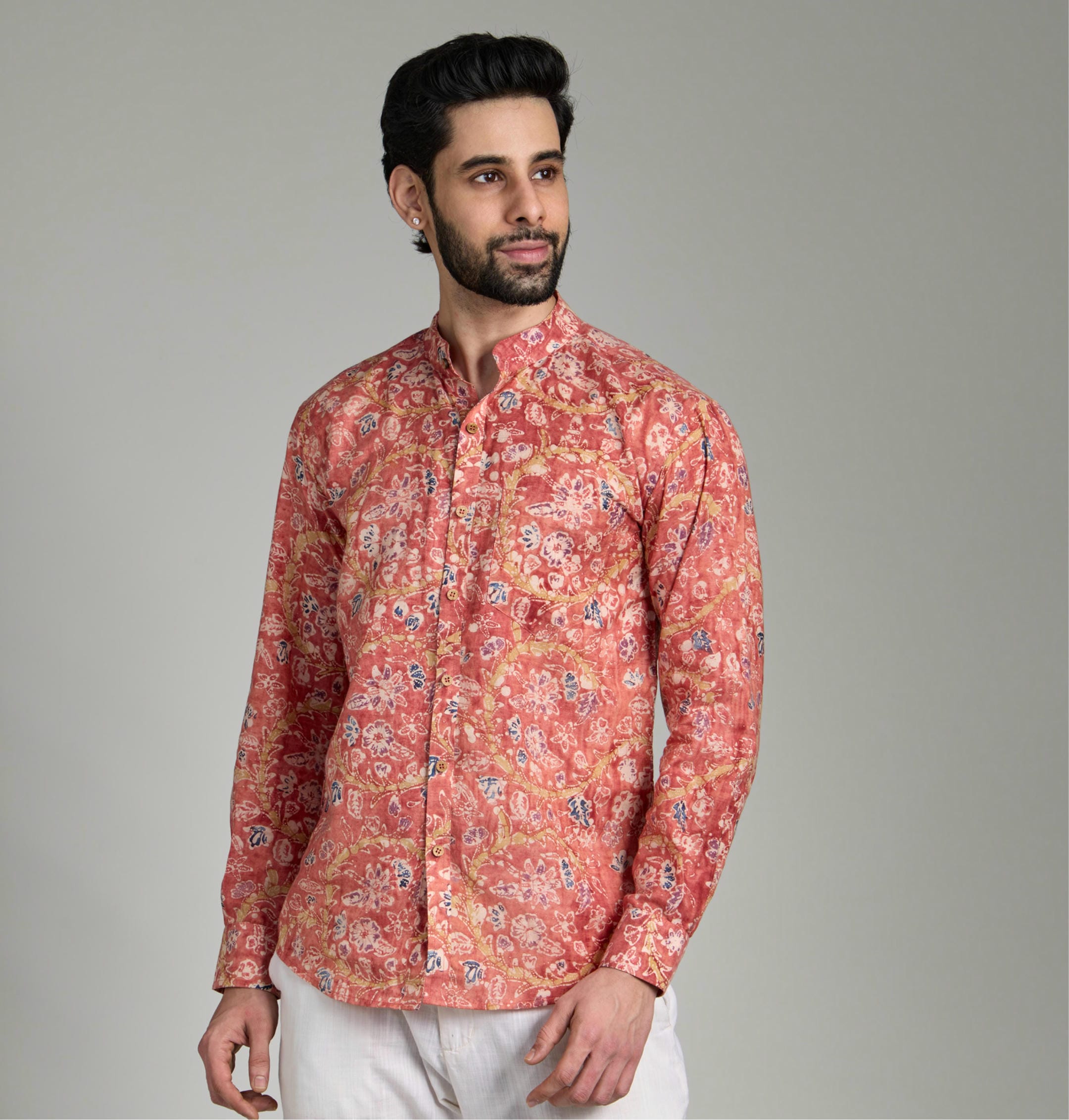 This shirt is a celebration of tradition with a contemporary twist. Crafted using the age-old batik technique, it reimagines classic artistry into fresh, modern patterns that feel both rooted and new. Dyed with natural colors, the fabric carries a depth and vibrancy that elevates it beyond the ordinary, making it perfect for festive gatherings and evening celebrations.