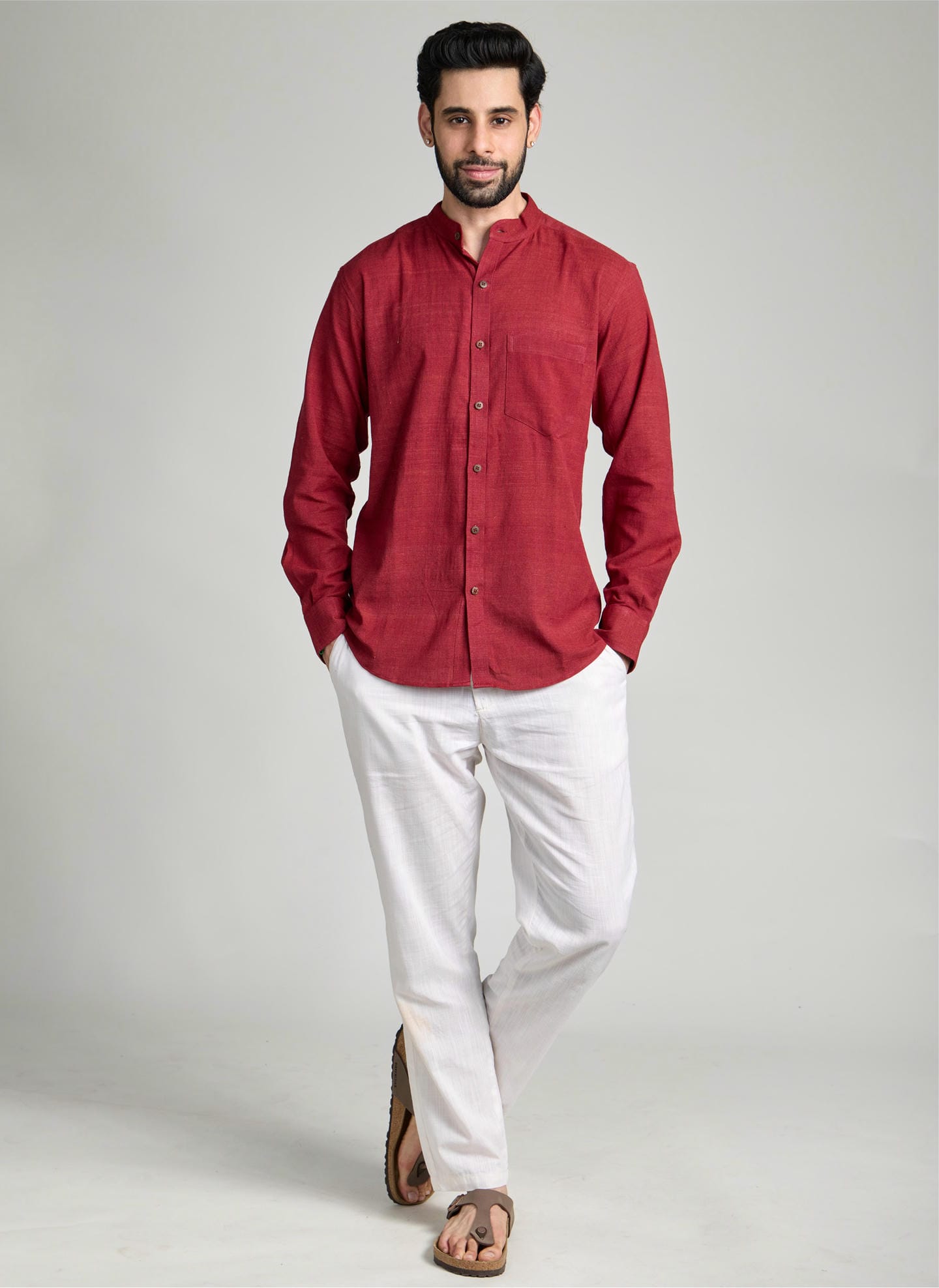 A shirt that tells a story of heritage and craft. The hand-spun yarn is naturally dyed by tribal artisans in Kotpad using the rich hues of Aal root, preserving a centuries-old tradition. Hand-woven into fabric, each piece reflects the skill, care, and dedication of the last few remaining craftsmen keeping this indigenous art alive. By wearing it, you carry forward their legacyβblending timeless style with deep cultural meaning.