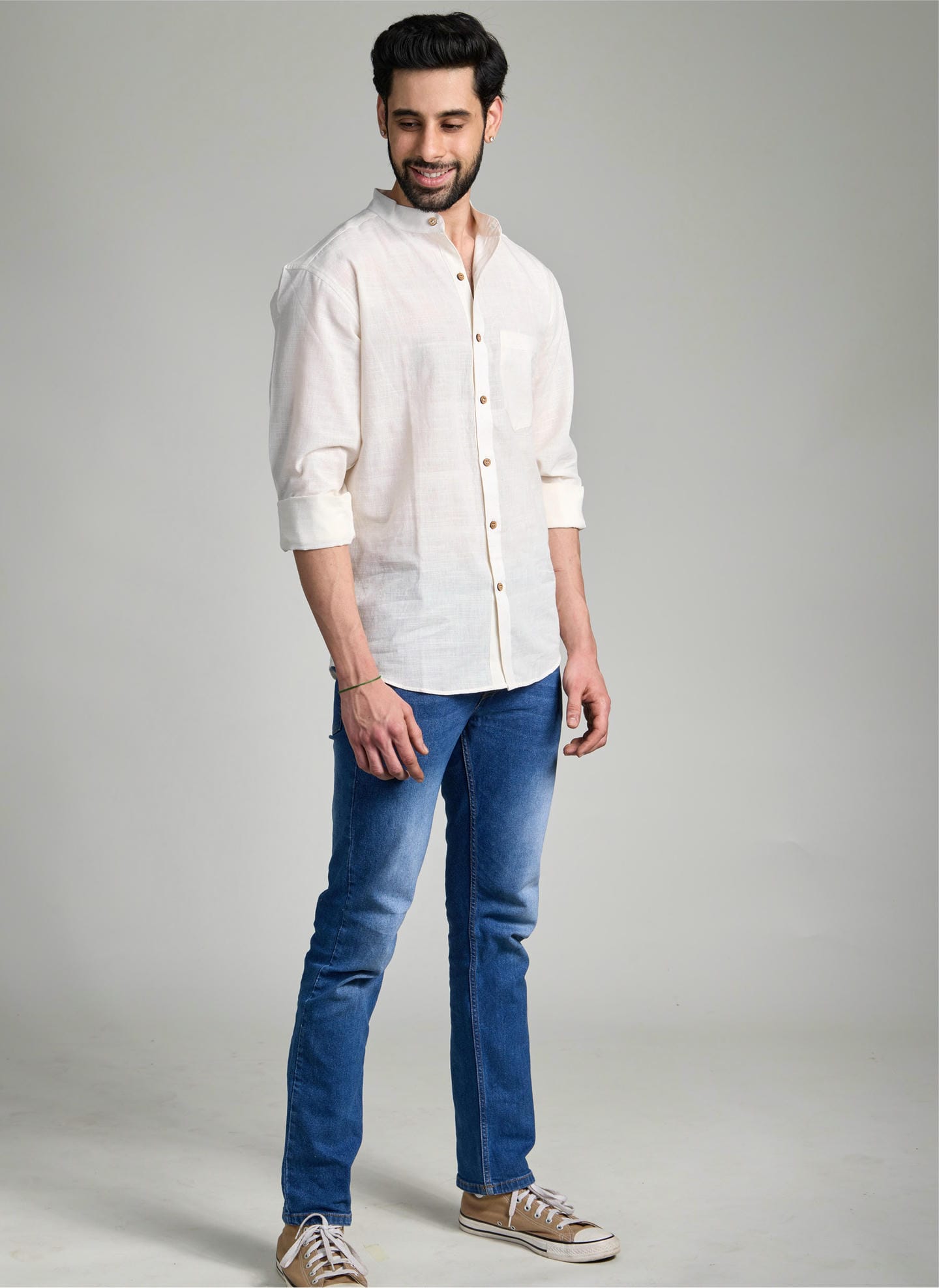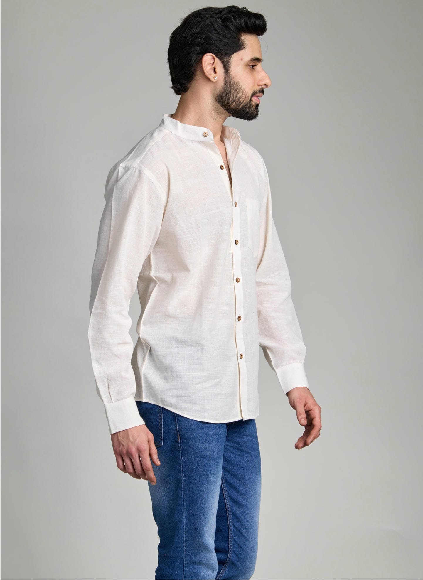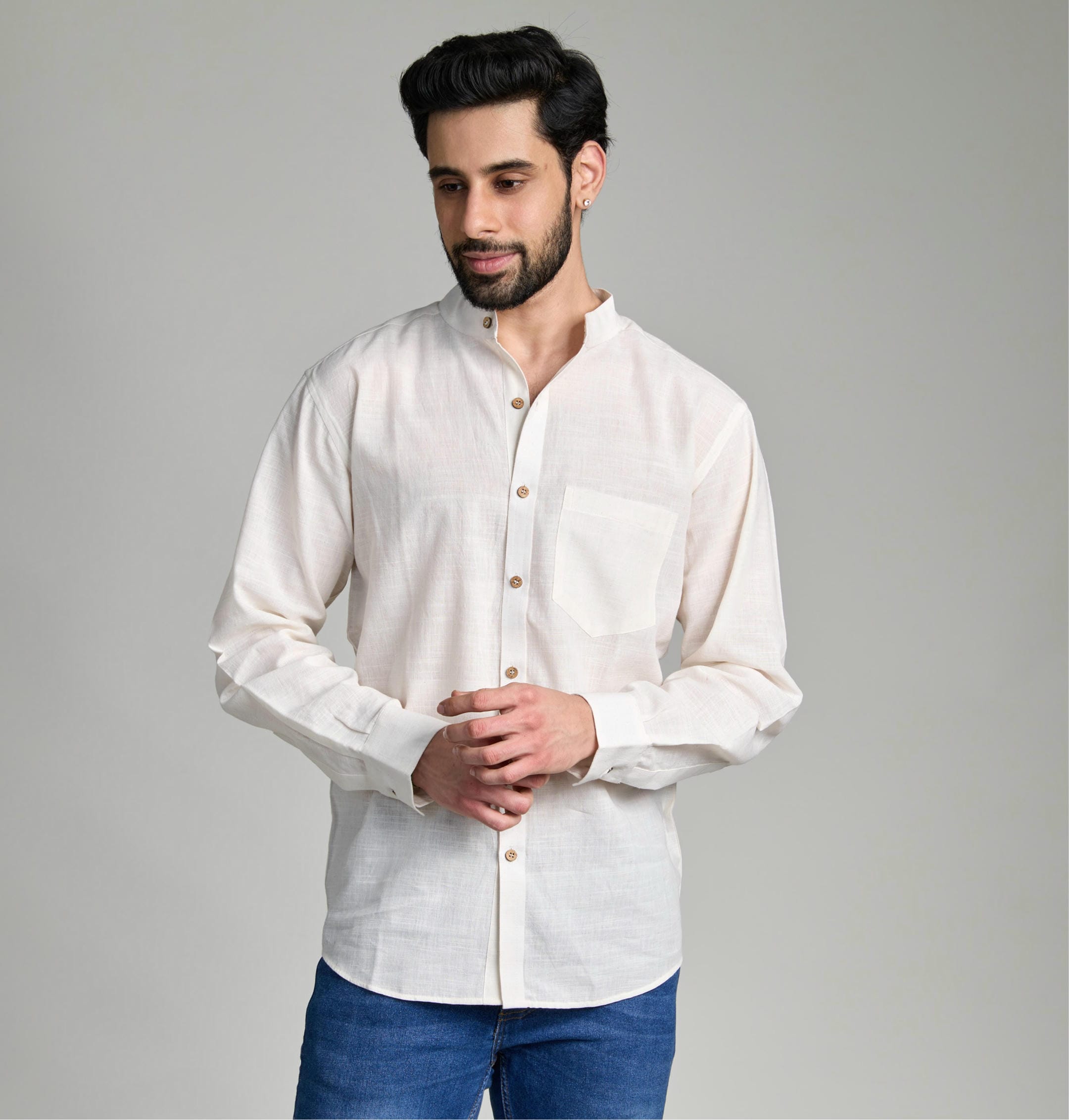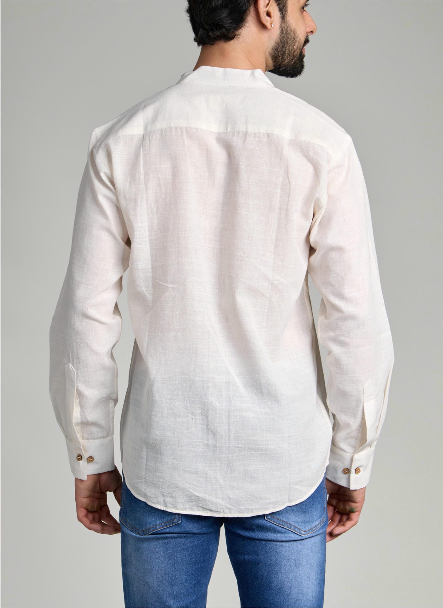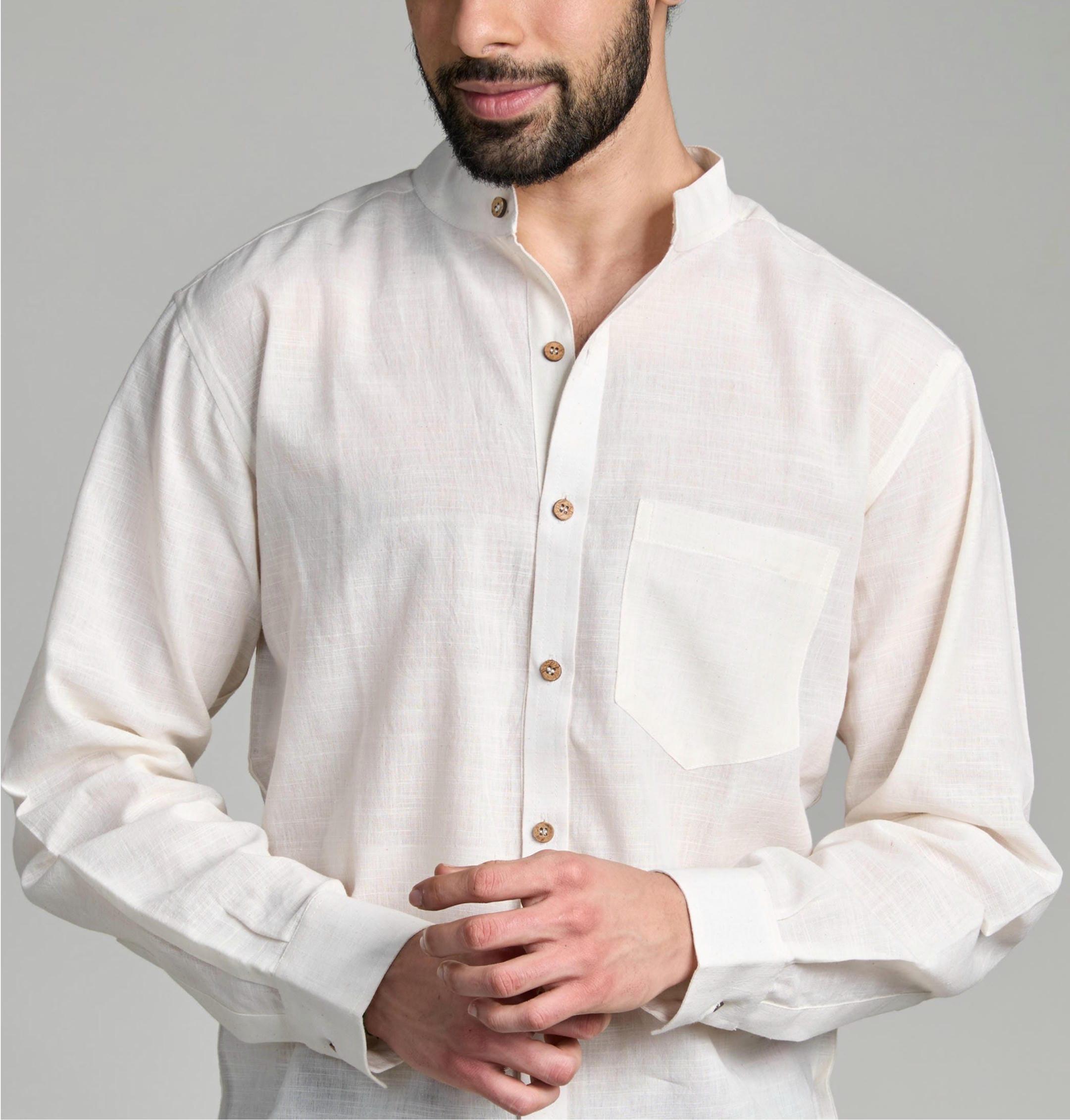 A natural white shirt that celebrates purity in its truest form. Retaining the original color of the yarn, it remains completely undyedβ€”showcasing simplicity, authenticity, and mindful craftsmanship. Designed to transition seamlessly between business and leisure, it offers a refined yet relaxed look for every setting. Pure, versatile, and timeless, this shirt is as natural as it gets.